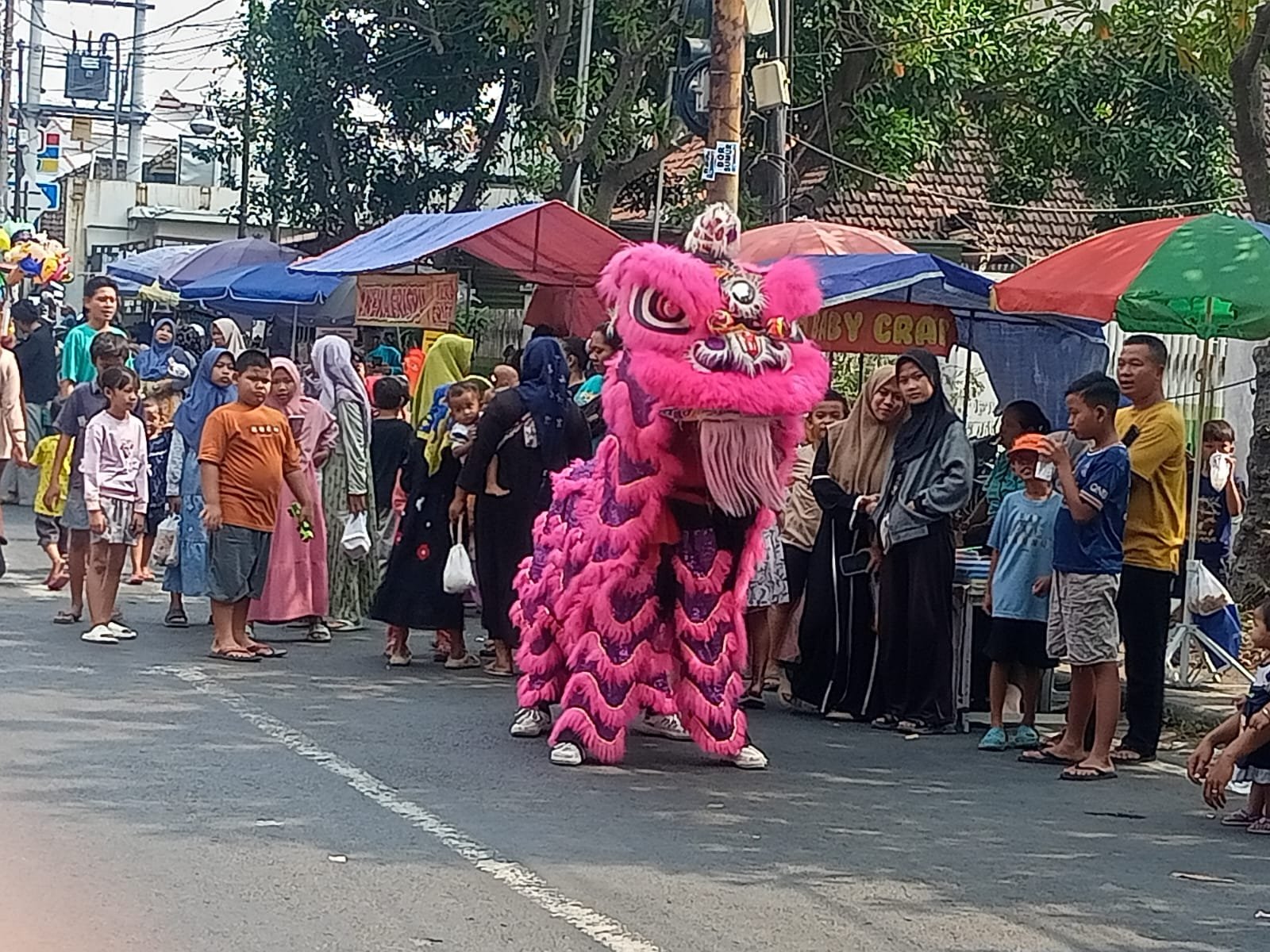 Penampilan Barongsai yang energik dengan iringan tambur dan simbal berhasil mencuri perhatian anak-anak hingga orang dewasa. Banyak warga yang mengabadikan momen tersebut dengan ponsel mereka.