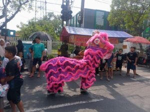 Globalnews9.com || Krian – Suasana Car Free Day (CFD) di Jalan Raya Sunandar Priyo Sudarmo Krian, Kabupaten Sidoarjo, Minggu pagi, tampak lebih meriah dari biasanya. Selain senam sehat dan stand UMKM, pertunjukan Barongsai ikut memikat perhatian masyarakat yang memadati area kegiatan bebas kendaraan Minggu (19/10/2025)