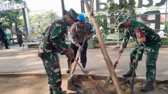 Krian,Globalnewa9.id – Detik detik jelang peringatan HUT Brimob yang ke 80 Korps Brimob Polri , Satuan Brimob bersama Polsek/Koramil Krian melakukan kegiatan Corve/Kerja Bakti bersama bersih bersih Taman Abirupa Krian Kabupaten Sidoarjo, Selasa tanggal 21/10/25.