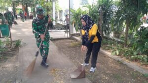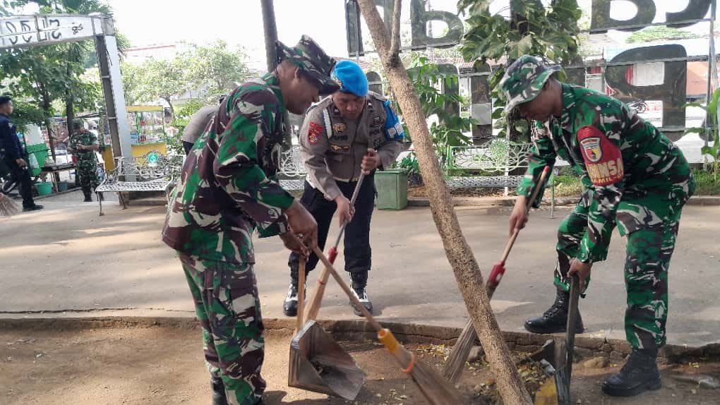 Dengan penuh semangat, personel dari Brimob, TNI dan Polri bahu membahu membersihkan taman,memungut sampah, merapikan tanaman liar, hingga memperbaiki fasilitas maupun yang ada disekitarnya taman yang berkenan belum rapi.