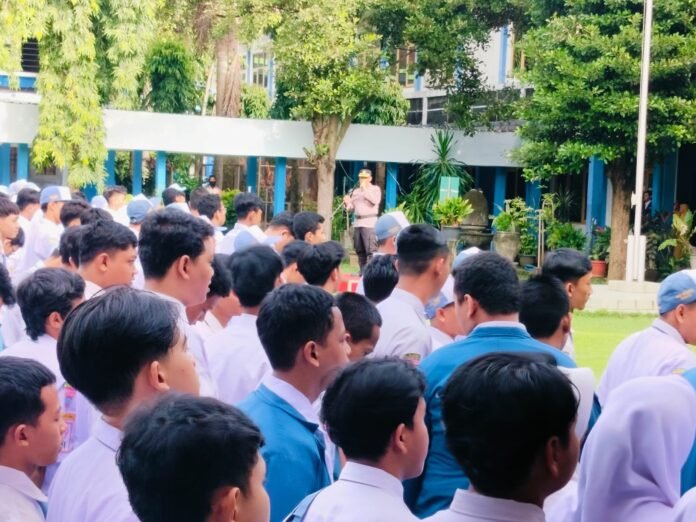 Globalnews9.id || Kapolsek Mojoroto Kompol Mukhlason menjadi pembina Apel dalam kegiatan Apel Senin di SMK Negeri 1 Kediri, pada Senin pagi 22 April 2024. Dalam amanatnya, Kapolsek mengingatkan para pelajar untuk tidak terlibat kenakalan remaja, terutama tawuran, balapan liar, tindak asusila, minuman keras dan narkoba.