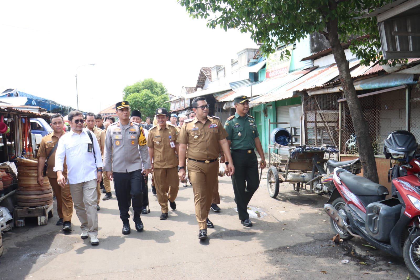 Pj Walikota Moh. Ali Kuncoro S.STP., M.Si., didampingi Dandim 0815/Mojokerto Letkol Inf M. Iqbal Prihanta Yudha, S.E. dan Kapolres Mojokerto Kota AKBP Daniel S. Marunduri, S.I.K., M.H. memimpin langsung sidak yang menyasar pasar tradisional hingga pasar modern Pasar Tanjung Anyar Kota Mojokerto, Sanrio Swalayan, serta Superindo.