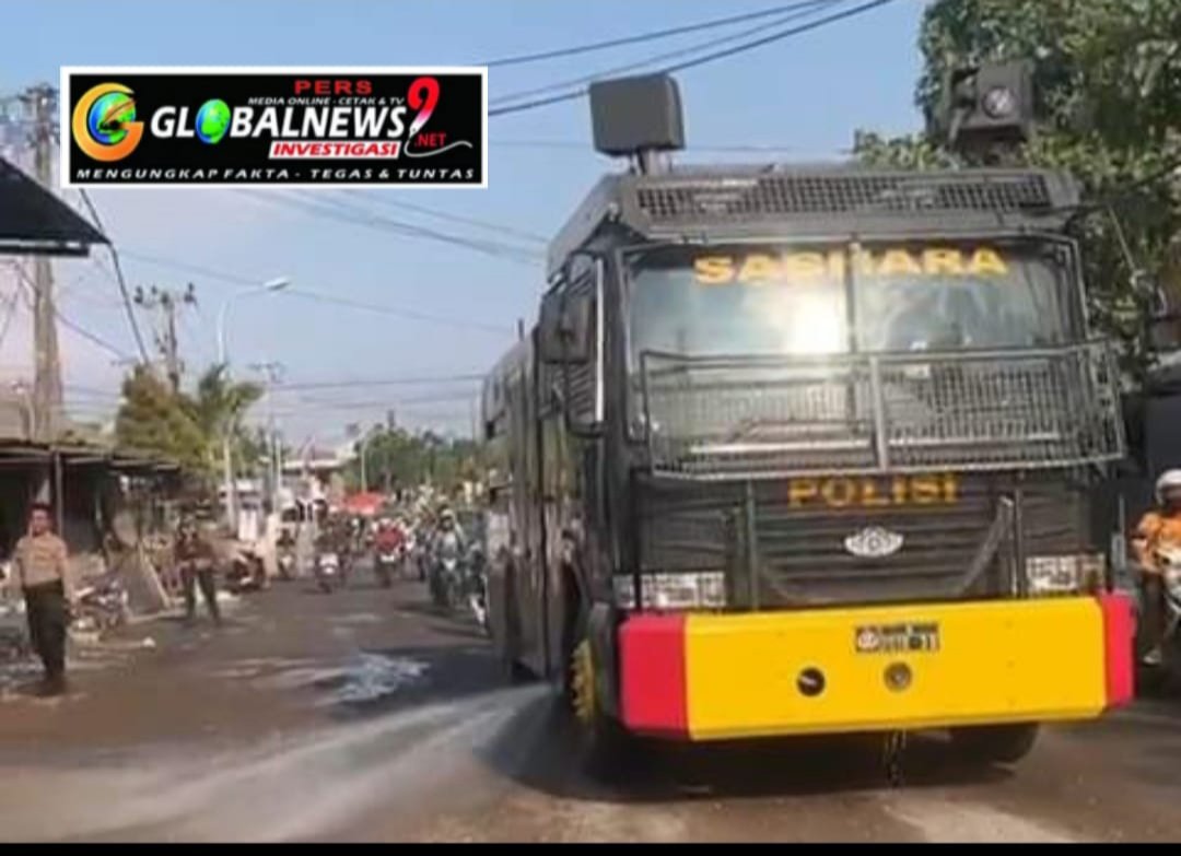 Globalnews9.id || GRESIK Mobil operasional Water Cannon Satuan Samapta Polres Gresik Polda Jawa Timur tampak diterjunkan di jalan raya Yosowilangun – Suci Kabupaten Gresik.