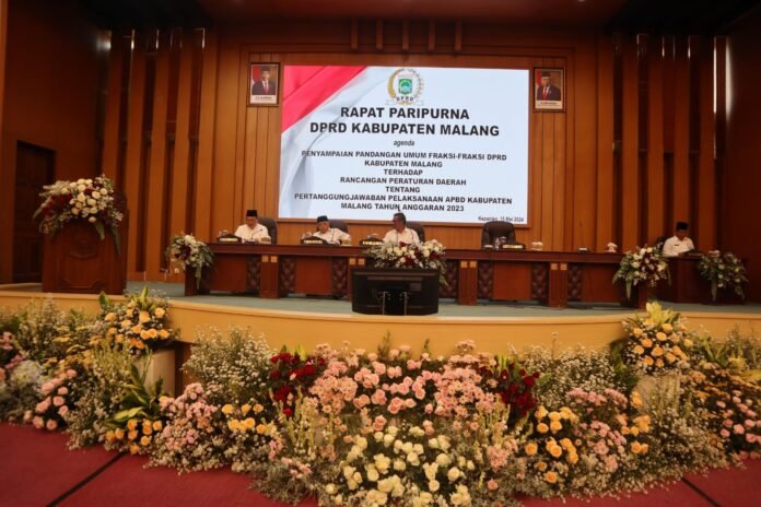 Globalnews9.id || Kab. Malang – DPRD Kab. Malang Mengadakan Rapat Paripurna dengan agenda Penyampaian Pandangan Umum Fraksi-fraksi DPRD Kabupaten Malang Terhadap Rancangan Peraturan Daerah Tentang Pertanggungjawaban Pelaksanaan APBD Kabupaten Malang Tahun Anggaran 2023, Rabu(15/05/2023).