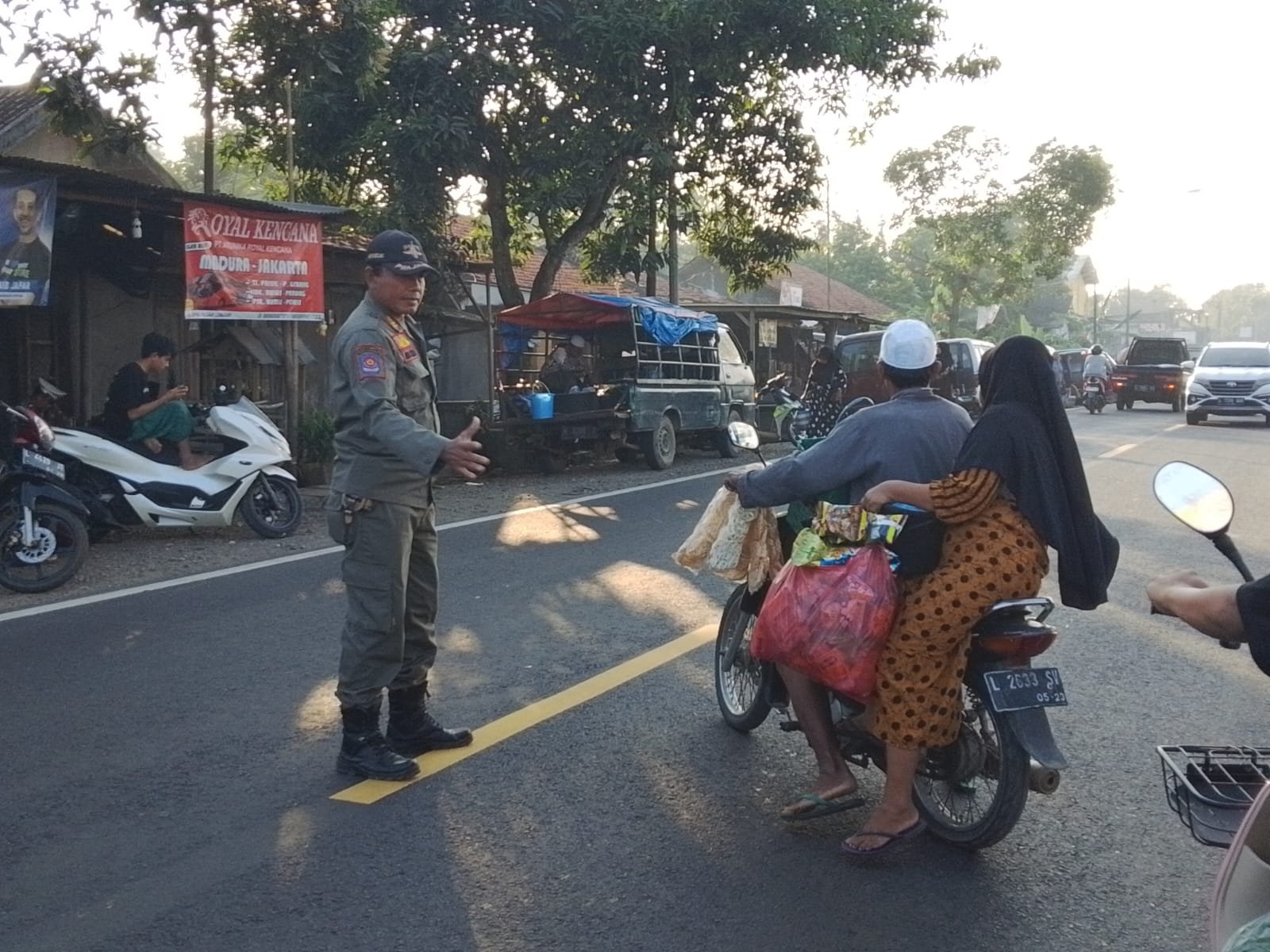 Petugas Satpol PP ini patut di ajungkang jempol dan patut di berikan penghargaan dari atasannya, karna membantu dan mengawal mobil yang melintas di pasar lomaer kecamatan blega demi keselamatan warga yg menyabrang.