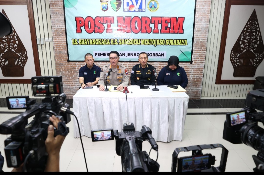“Izinkan kami menyampaikan bela sungkawa yang sedalam-dalamnya terhadap para korban. Polda Jawa Timur bersama seluruh jajaran terus berupaya maksimal dalam penanganan identifikasi jenazah, dengan tetap menjunjung tinggi kehormatan para korban,” ujar Kombes Pol Jules Abraham Abast, dihadapan awak media.